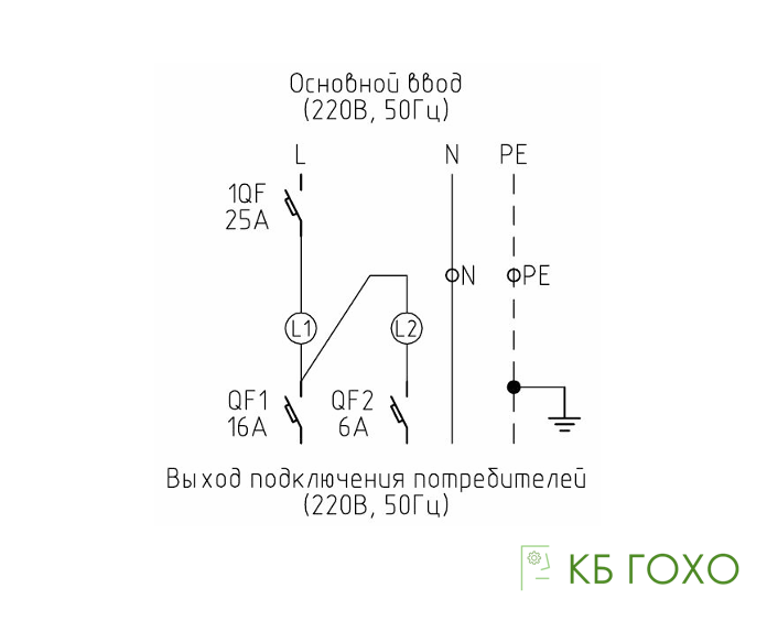 Вводной АВ номиналом 25 А, отходящие линии 16A и 6A.