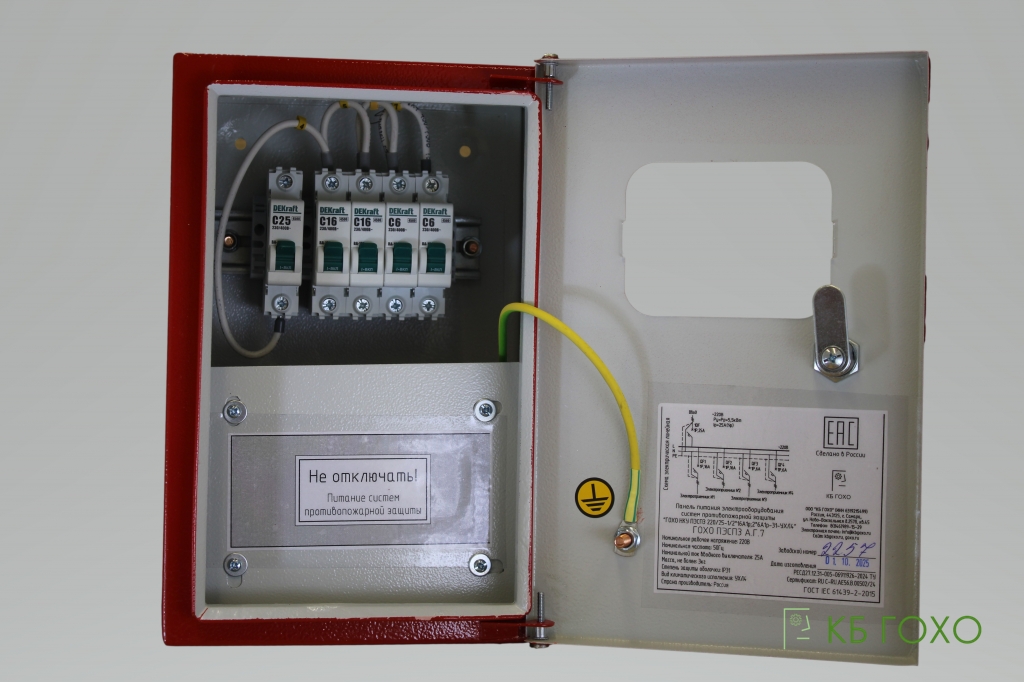 НКУ ГОХО ПЭСПЗ А.Г.7 (модель ГОХО НКУ ПЭСПЗ 220/25-1/2*16А1р;2*6А1р-31-УХЛ4) — является НКУ для питания электроприемников СПЗ на объектах, которые отнесены к третьей категории по надежности электроснабжения, что соответствует требованиям пункта 5.4 свода правил СП 6.13130.2021.